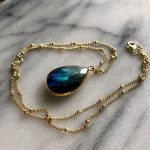 آویز گردن بند کار شده با سنگ لابرادوریت