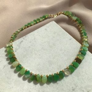 گردنبند ترکیبی با سنگ دلخواه و گوی طلا