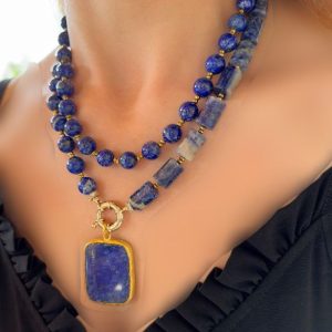 گردنبند دو لاین با سنگ لاجورد